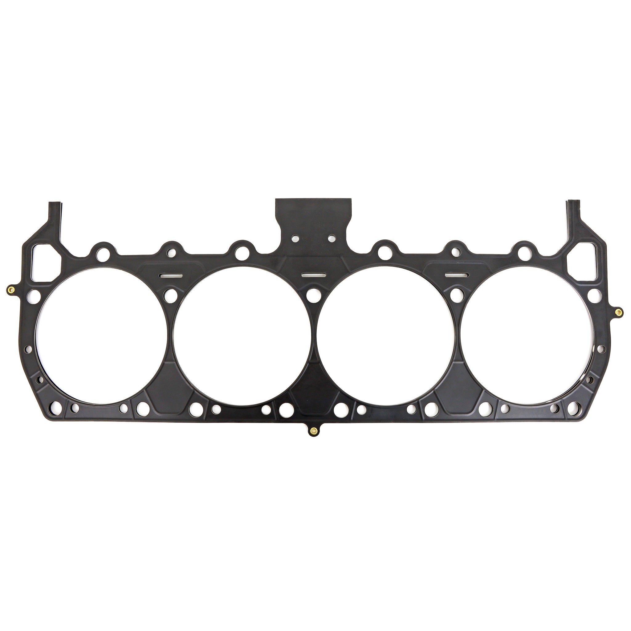 Cometic Multi-Layer Steel gaskets are comprised of multiple embossed layers of both proprietary high temperature coated and uncoated stainless steel, requiring less clamp load, creating less bore distortion, and conforms load distribution across the sealing area.