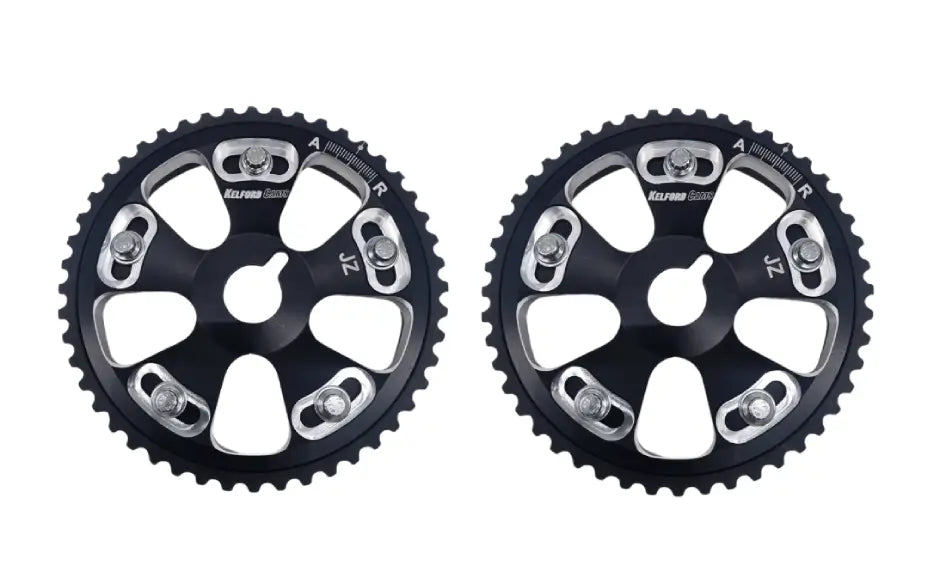 By using modern CNC machinery and small batch runs with strict QA processes employed at each step in the production process we have been able to deliver a product with the best tolerances and quality levels in the industry. The gears have been CNC machined from highest quality 6061 T6 aluminium to more precise tolerances than original OEM gears. The tooth edges have been bevelled to increase belt life and then hard anodised to ensure strength and longevity. Precise degree markings are then laser etched onto the cam gear to assist in the tuning of engines. To finish we have used high quality fasteners and a heli-coil thread insert in the ring gear to allow enough torque to be applied while tightening fasteners. They can be adjusted multiple times with confidence that the threads will not stretch or fatigue.