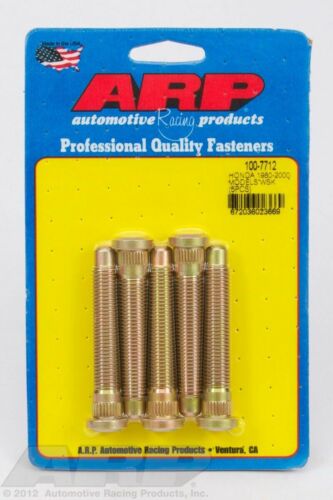 ARP Wheel Studs Honda applications, 5-Pack. Owners of 1980-2000 Hondas can obtain vastly improved safety through use of new high strength heat-treated chrome moly wheel studs now available from the industry's leading manufacturer of racing fasteners, ARP. The studs are manufactured from 8740 chrome moly steel and heat-treated to a nominal tensile strength of 190,000 psi. Threads are rolled after heat-treat, which significantly improves fatigue strength. ARP studs are engineered to handle both the shock loads (shear) common to drag racing and side loads (elongation) of road course activities. The same material and heat-treat is used in ARP studs used in NHRA and NASCAR competition. Studs are cadmium plated for extra durability.